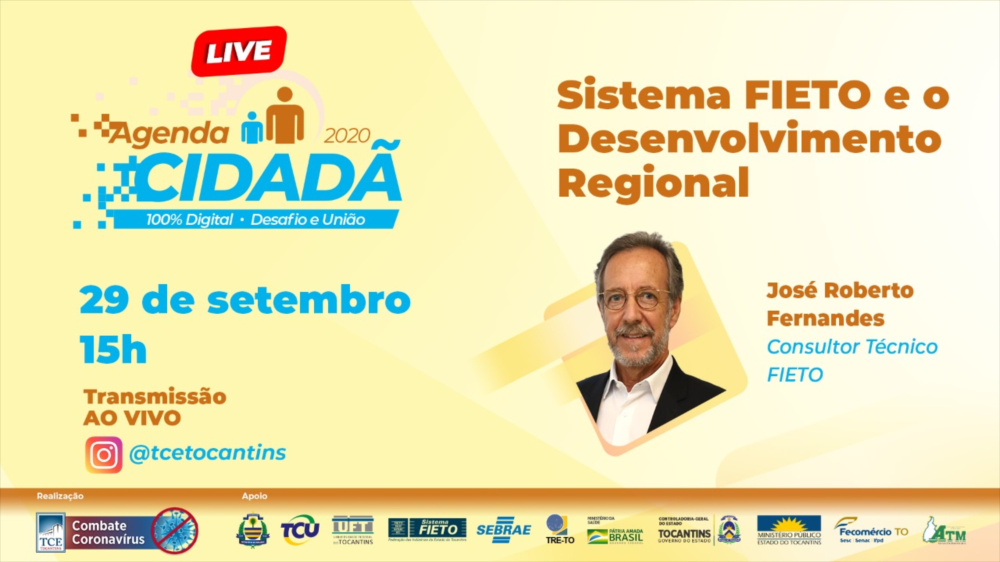 O Tribunal de Contas do Tocantins (TCE/TO) realiza na próxima terça-feira, 29, uma live no Instagram da Corte (@tcetocantins), com o consultor técnico da FIETO, José Roberto Fernandes, que abordará o tema “Sistema FIETO e o Desenvolvimento Regional”, a partir das 15 horas, passando orientações e dicas aos gestores e sociedade em geral.