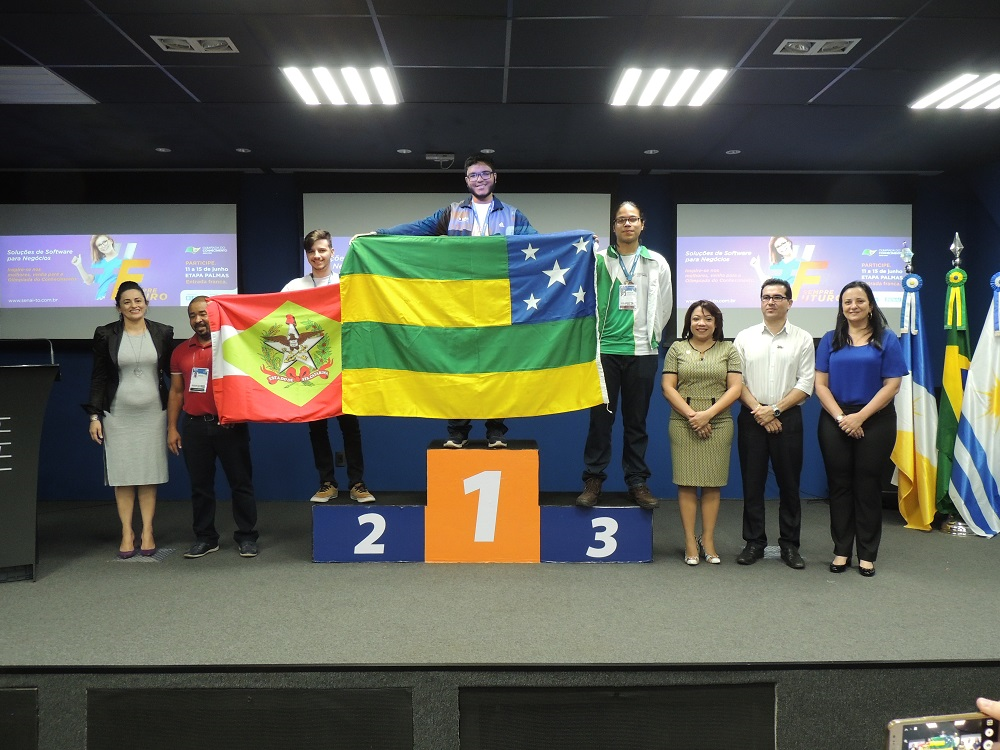 As seletivas nacionais da competição são distribuídas por ocupações em diferentes cidades do País. O anúncio dos três primeiros colocados na competição marcou a cerimônia de encerramento da seletiva de Soluções de Softwares para Negócios em Palmas na manhã desta sexta-feira, 15/06: João Gabriel, de Sergipe, ficou com o 1º lugar, Gabriel Panca Ribeiro, de Santa Catarina, com a 2ª colocação e Fellipe de Mendonça no 3º lugar do Distrito Federal. A emoção da entrega de medalhas foi complementada com a apresentação do grupo regional de quadrilha Pisada de Butina que este ano homenageia os professores em seu enredo.